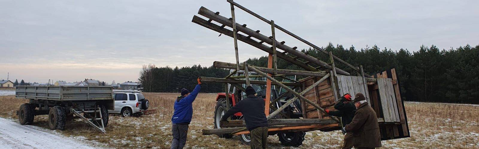 Ze względu na nową zabudowę mieszkalną w Szczedrzyku na 1 i 2 oddziele, niepozwalającą na bezpieczne i zgodne z przepisami prawa wykonywanie polowania, grupa naszych myśliwych postanowiła usunąć tam stojące ambony i przewieść je w nowe korzystne do polowania miejsca.